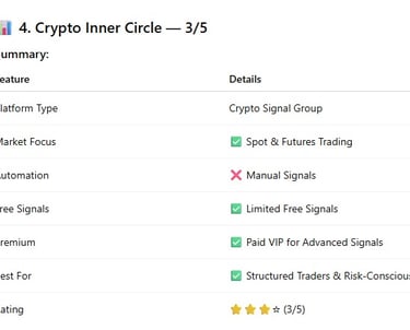 This article provides an unbiased review of the “Crypto Inner Circle” trading support group. With many trading communities promising profitable signals and expert guidance, it’s important for traders to understand which groups are credible and which may fall short.