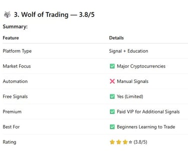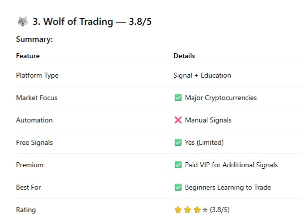 Wolf of Trading is particularly valuable for traders who want signals combined with real trading education, rather than purely speculative trade alerts.
